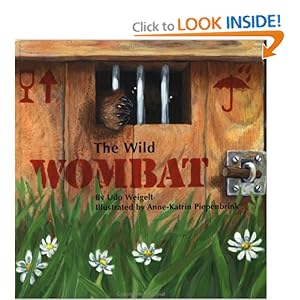 What we found was The Wild Wombat by Udo Weigelt, illustrated by Anne-Katrin Piepenbrink. We always enjoy learning about animals, and this book seemed fun from our quick perusal of it. Indeed, we've all enjoyed this book. All the animals at the zoo are nervous when they hear that the wombat is coming to live at the zoo, for they don't know who the wombat is and mistakenly believe him to be monstrous. Each animal embellishes the description more and more in this game of telephone, until finally the wombat arrives at the zoo and is completely unlike any of their expectations.